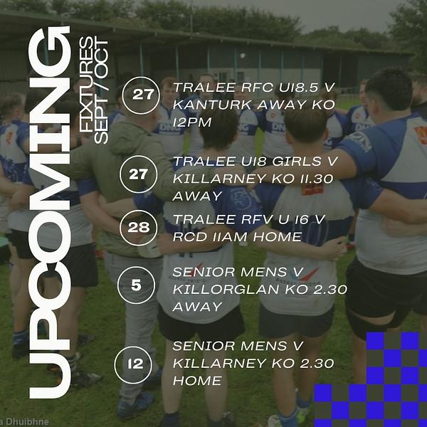 - 27th Sept u18.5 TraleeRFC v Kanturk RFC KO 12pm Away